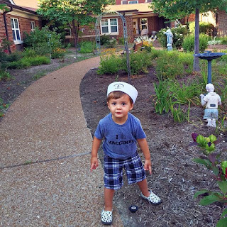 Again, back to gorgeous weather, Patrick got to have some water table (his new favorite thing--really I think he likes the hose more but he knows he won't get to play with the hose unless the water table is out--smart one he is) playtime and I got to sit outside with Rosie and enjoy the gorgeousness. It's now nasty and hot again and I miss last week's weather oh-so-much.